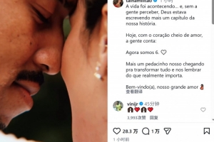 体育资讯3月21日讯 米利唐与妻子泰纳·卡斯特罗联合更新社媒动态,宣布泰纳·卡斯特罗怀孕。