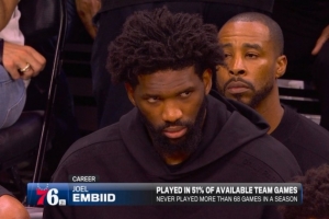 据统计,恩比德生涯的出勤率仅51%,单赛季出战场次从未超过68场(最高就是2021-22赛季的68场)。