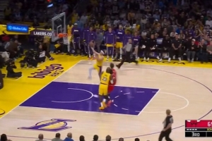 下一篇: 还能飞啊!詹姆斯反击接里夫斯传球 中路拉杆躲开防守上篮打中